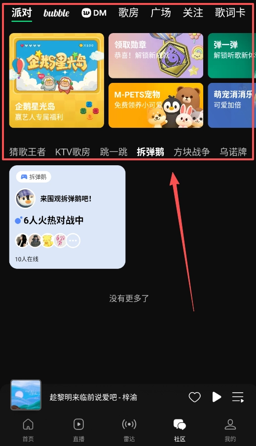 QQ音乐里可不只有听歌这一项,它还藏着不少有趣的功能呢!你要是进到直播或者派对页面,既能进入歌房畅快K歌,也能玩上几把猜歌王者之类的小游戏。