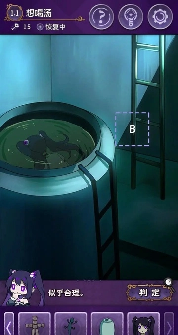 结局2:把稻草人、药瓶和壁虎放入A里,再把完美小姐和红线放入B里即可解锁结局2