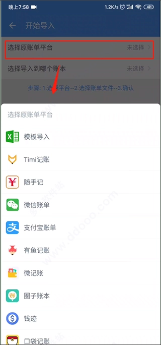 选择该账单文件原来所属的平台
