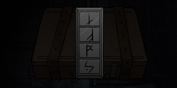 点击平放的镜子获取(符文1)——依据KILL的方向与镜像关系辨别正确的符文写法。拾起立式镜子上的【破布条】,擦拭皮箱上的灰尘后得到(符文2)——根据HUNTER判断方向。从立式镜子上取得(符文3),在地面上找到(符文4)。利用(符文1、2、3、4)的上下位置关系解开皮箱密码,即可获得【门把手】和【榔头】,具体如图↓所示。
