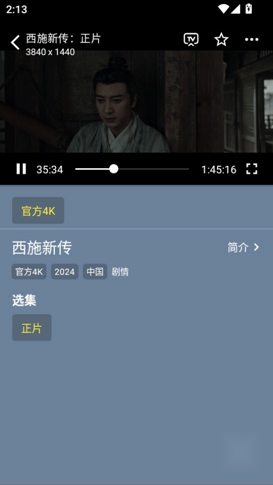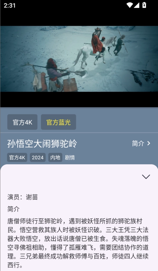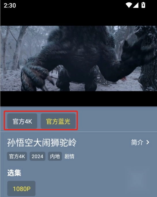 播放窗口可以选择影片清晰程度,如4K、蓝光等。