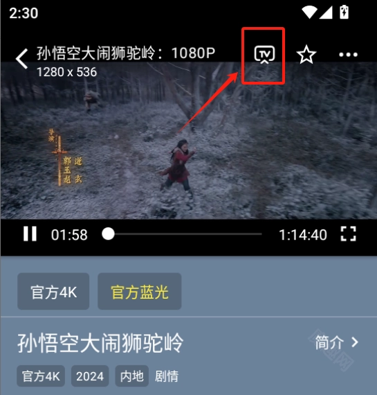 在视频播放窗口的右上角,点击那个tv图标就能实现投屏功能啦,不过要特别注意的是,投屏时务必确保所有相关设备都连接在同一个wifi网络环境下哦。