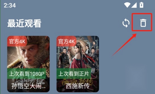 点击最新观看右上角的垃圾桶图标,就能删除最近观看记录啦。