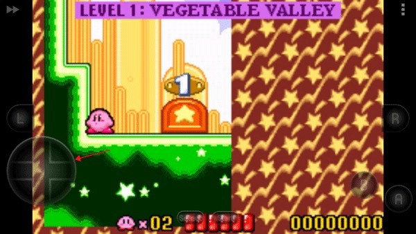 通过屏幕左侧的十字键控制卡比进行移动。