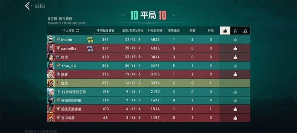 7、完成对决之后就会有【对局统计】,每一局的表现都会有详细的数据统计,可以在对局结束之后查看;