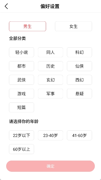 偏好设置:打开设置界面后选择“阅读偏好”选项,勾选对应的性别与分类选项,这样就能获得更符合个人喜好的小说推荐啦。