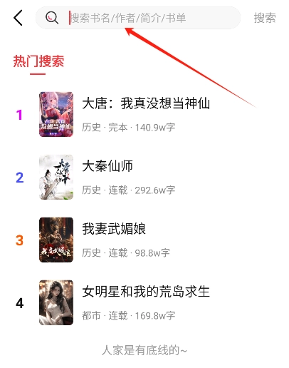 搜索小说:在搜索栏中输入书名、作者名等关键词,查找想要阅读的小说。