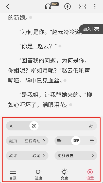 阅读设置调整:阅读时可对字体大小、背景颜色、亮度等进行调整。