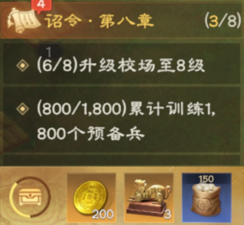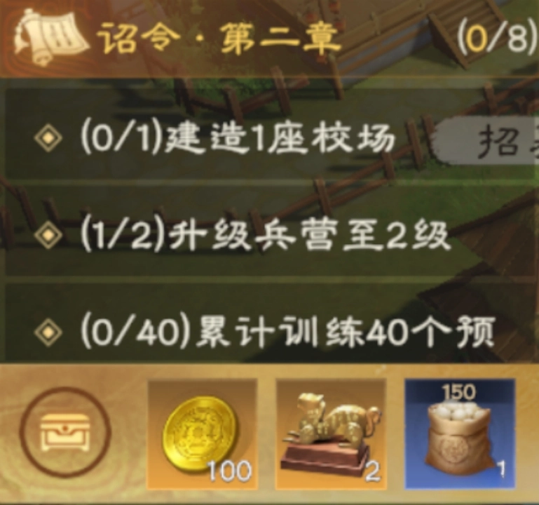 诏令任务已为主公规划好章节,作为前期开荒的重要主线,在遇到卡点前,主公只需跟随诏令持续推进即可。