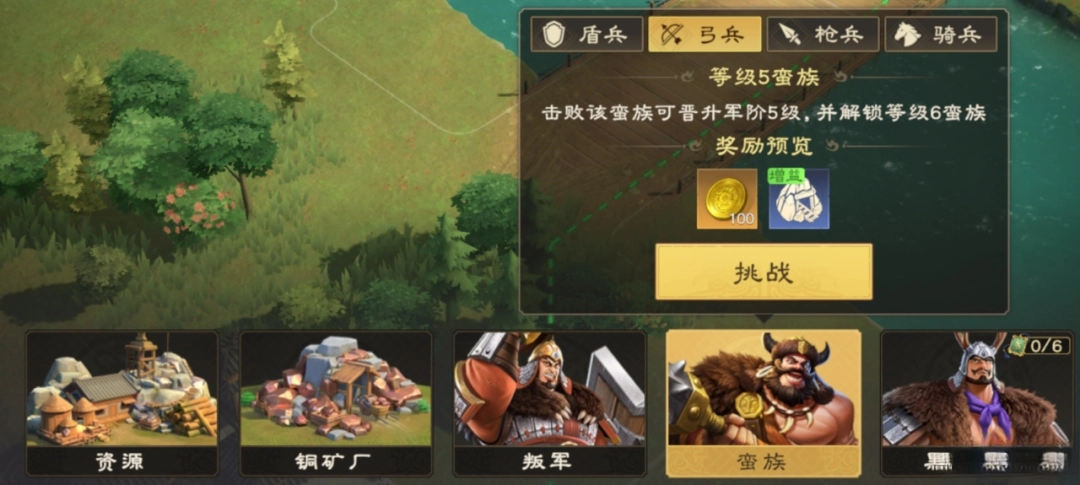 不过,在挑战蛮族的时候,主公得挑选自身开荒队伍能够克制的兵种,这样才能获取更显著的战斗优势!举个例子,要是主公自己的队伍是骑兵,那就得选择盾兵。