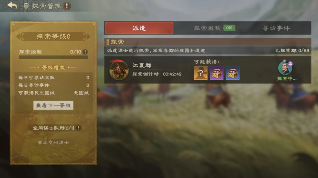 解锁探索系统后,主公得每天完成对应的探索任务,这样才能拿到所有奖励。另外,尽早升级探索系统、开启寻访系统,也能获得更多奖励哦!