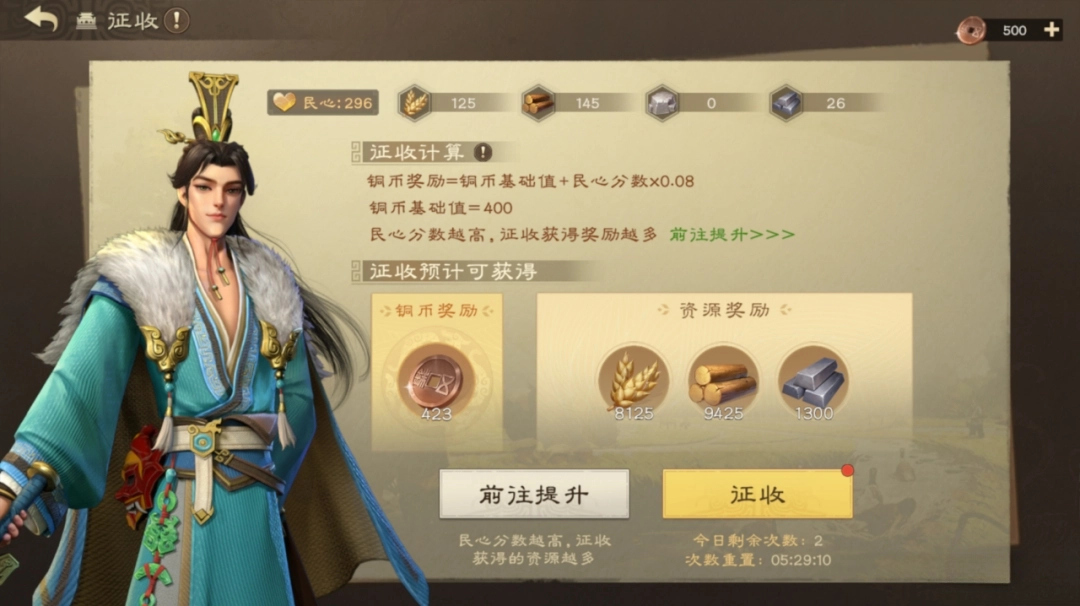 解锁民生系统后,需摆放民生封地内的建筑,以此提升征收奖励!