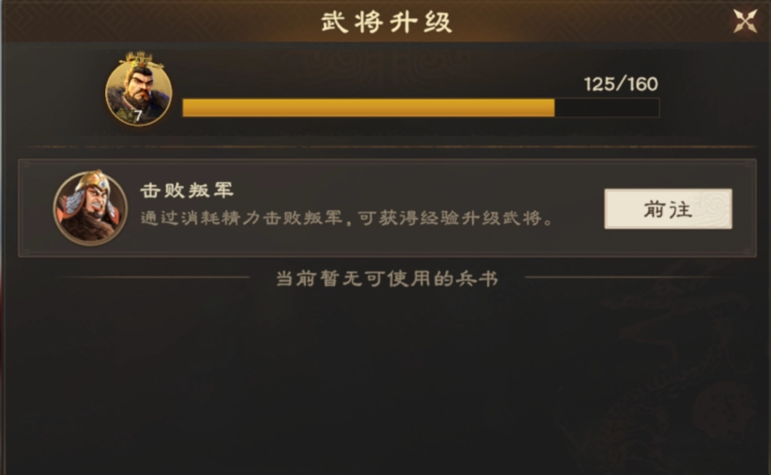 培养武将同样能够提升战力等级!最直接的方式就是为武将升级,在这里选择叛军势力,消耗精力执行扫荡操作就行。