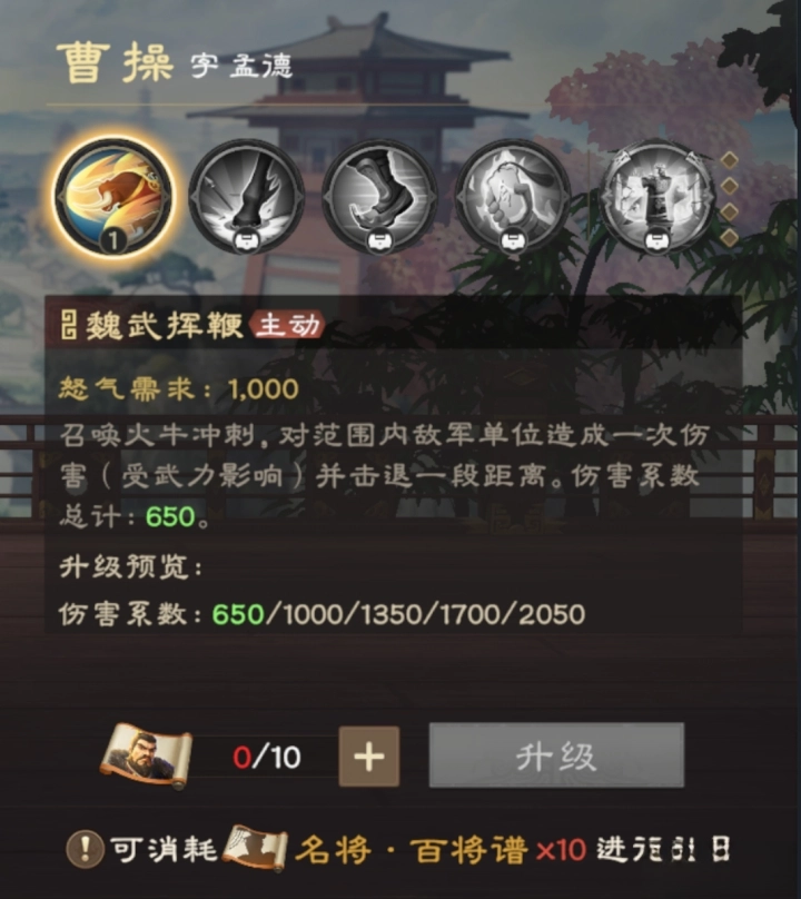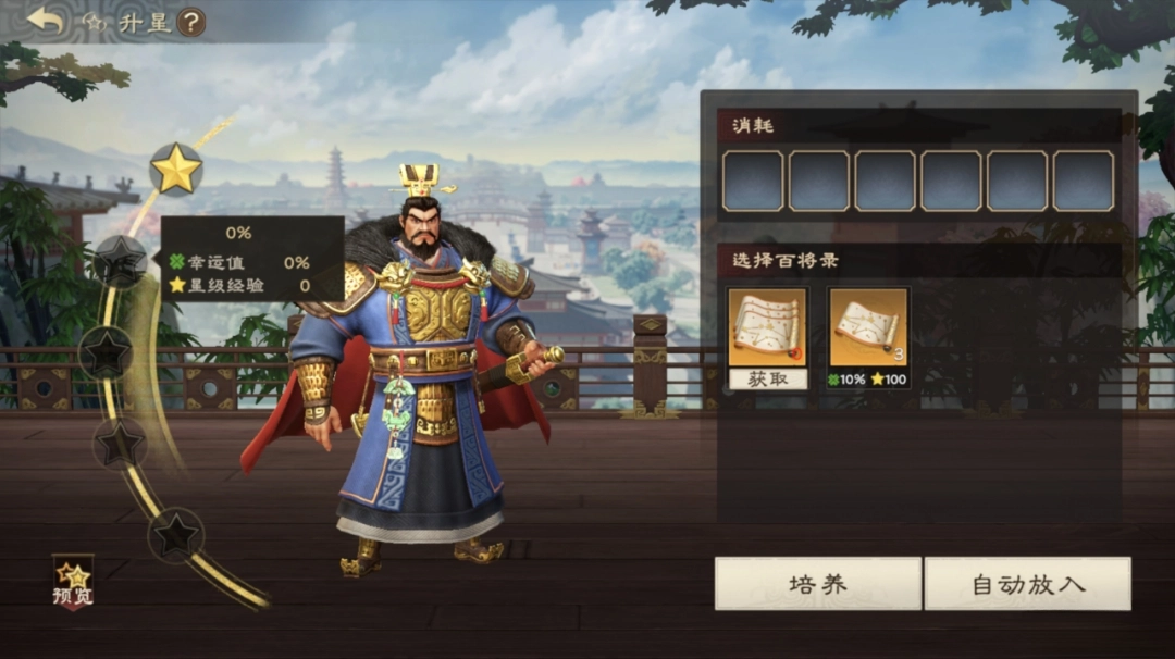 主公可以消耗同名武将的材料,来提升该武将的技能等级,进而增强战力。