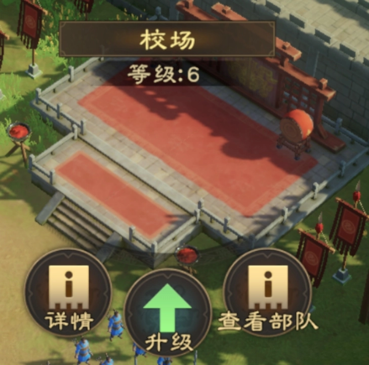 升级校场建筑,能够增加带兵量,使自身兵力更为充足,从而提升整体实力。