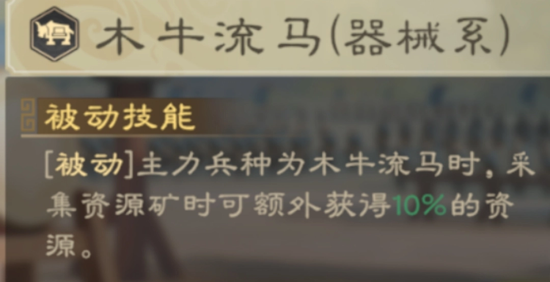 采集的时候,要是主公的主力兵种是木牛流马,就能得到更多的采集资源。