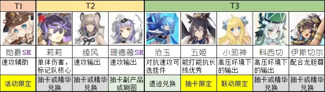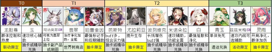 推荐铁打的辅助流水的C,预估白和人鱼是必练角色,特别是随着buff手和debuff手的增加,他们的净化作用会越来越大。
