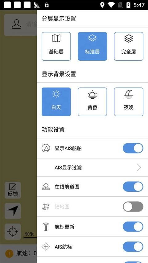 在“设置”里选择“标准层”,就能清楚看到长江干线上游那条绿色的“航路”了。
