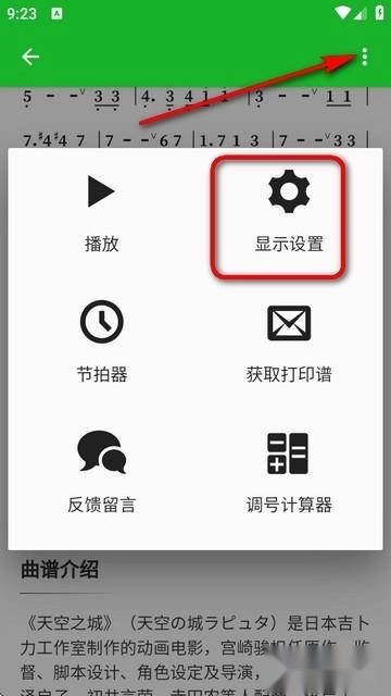 进入简谱界面点右上角的三个点,选择显示设置。