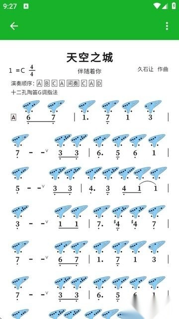 对着图形谱练习几首自己喜欢的曲子,陶笛的吹奏技巧和乐感就能自然而然地掌握了。