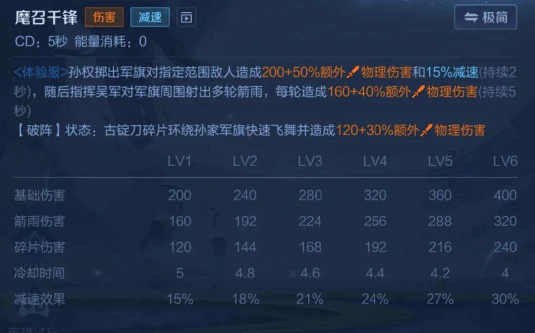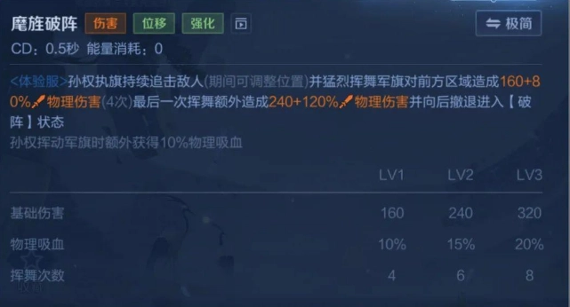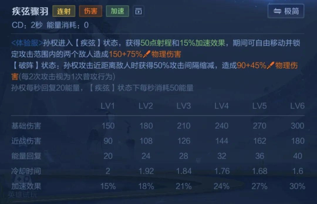 孙权的技能冷却时间仅为2-1.6秒,限制其技能释放频率的关键在于能量条——他没有蓝条,能量条便成为平衡强度的核心机制,这一点可参考马可波罗。不过孙权的能量只能随时间自然恢复,且技能等级越高,能量回复速度越快,因此二技能是他需要优先升级的主点技能。
