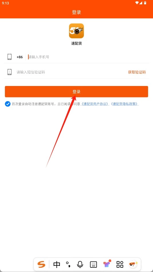 打开软件进入登录界面,输入手机号并获取验证码,勾选同意相关协议后点击“登录”按钮即可完成登录操作。