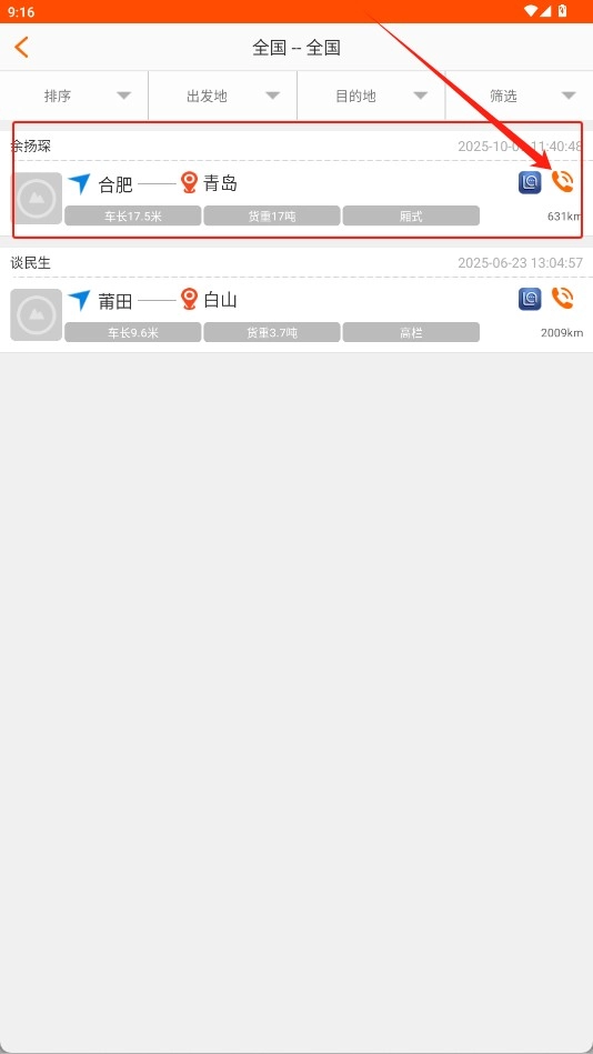 浏览货源信息时,若发现合适的货源,点击右侧的电话图标,就能直接与发货方取得联系并展开沟通。