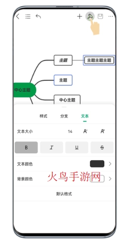 选择“文本”选项,其下分布文本编辑功能。包括:文本大小、加粗、倾斜、下划线、删除线、文本颜色、背景颜色、默认格式。