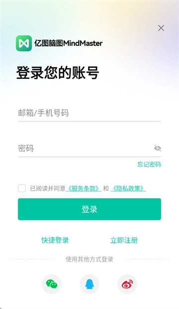 已有账号用户:可选择使用账号密码登录,快捷登录或第三方登录。