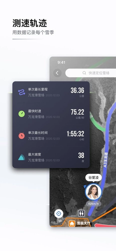 全新上线的「轨迹测速」功能,能实时记录滑行轨迹与速度,数据更加完善,维度也更为多元。