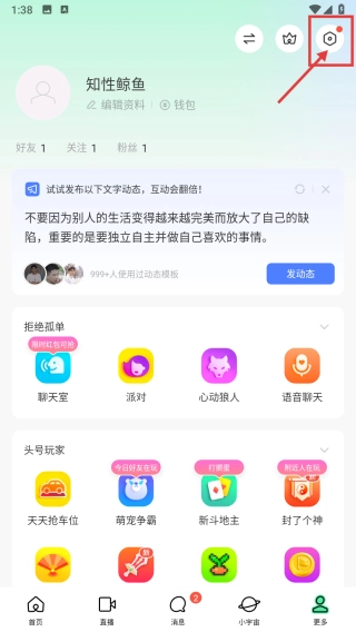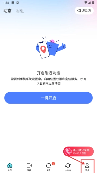打开社交类,点击底部更多选项,进入更多页面。