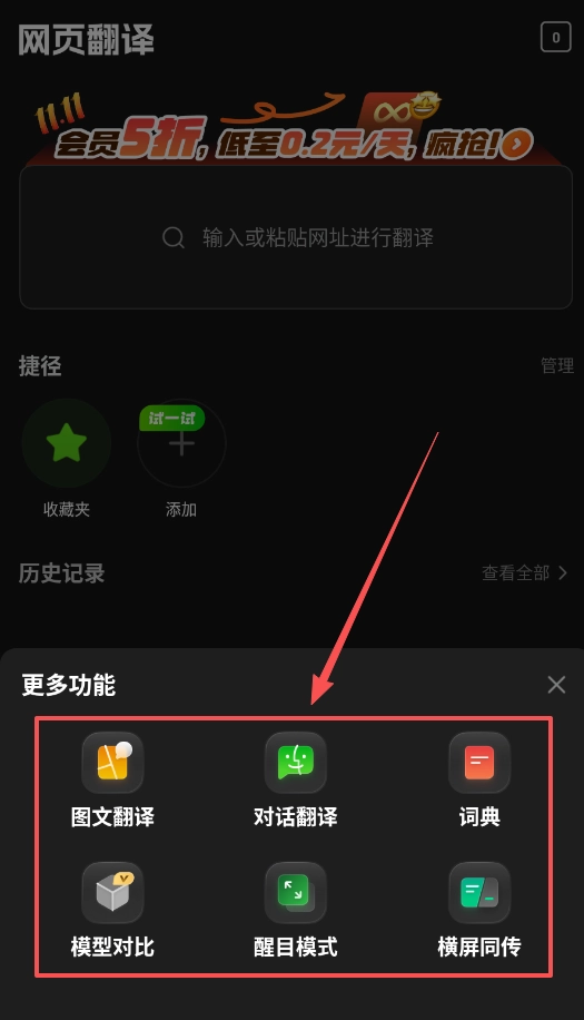 另外,别忘了看看网页收藏和生词本这样的附加功能,它们可以帮你把重要的翻译记录和生词保存下来,便于之后复习。