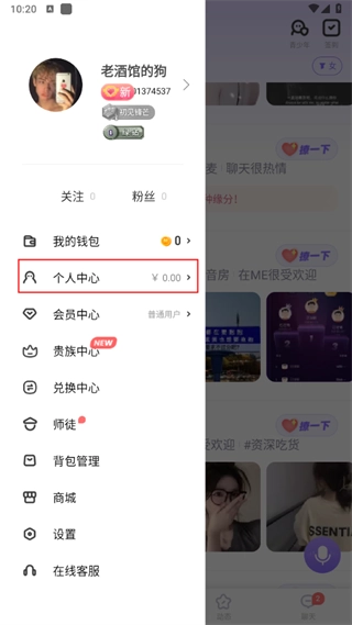 启动软件后,点击界面左上角的头像图标,然后选择“个人中心”这一选项。