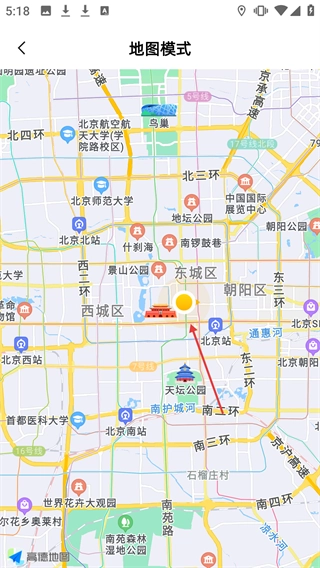 在地图模式下,能够查看北京地区的地图以及相关的位置信息。