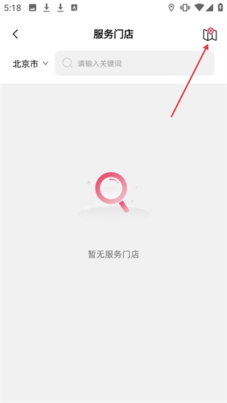 在服务门店页面,点击右上角的地图图标,即可进入地图模式。