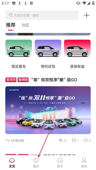 在发现页面点击【服务】进入服务页面。