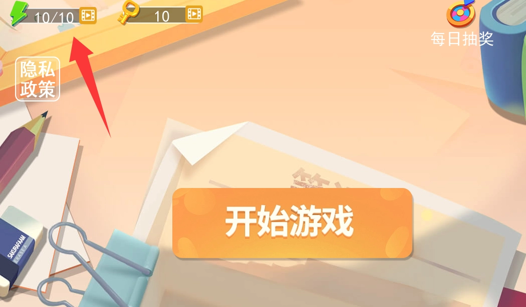 注意红色箭头那里是体力,每玩一次消耗1点体力。