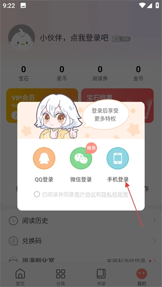 在登录引导界面,选择手机登录方式,即可进入手机登录页面。