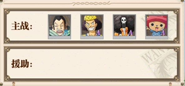 斯潘达姆担任1号位,凭借自身强劲技能执行牺牲型输出;2号位索隆负责提供强力攻击支援;3号位克洛助力提升队伍控制效果;4号位巴基则为全队带来爆发加成与减速作用。这套阵容对新手玩家十分友好,伙伴获取与觉醒难度低,突破后爆发力尤为出色,能帮助你迅速增强实力。