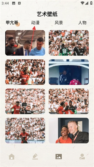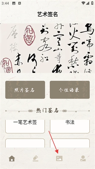 进入艺术签名页面后,点击底部的图片图标,即可进入艺术壁纸页面。
