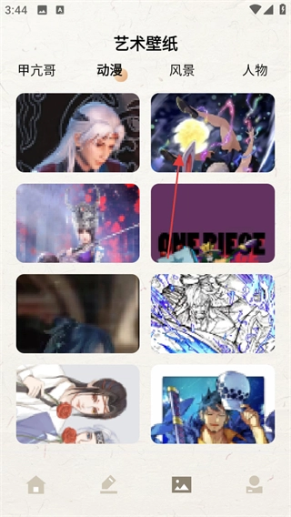 在艺术壁纸页面,点击动漫分类,查看动漫类壁纸。
