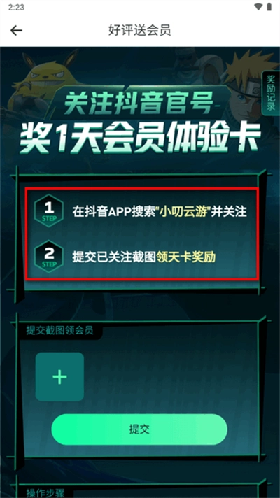 2、关注送1天的会员体验卡,在抖音上搜索关注后添加截图就可以领卡。