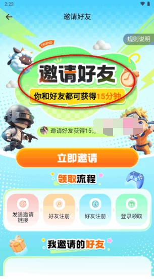 3、邀请好友,邀请好友可以获得15分钟的时长,朋友多的很方便。