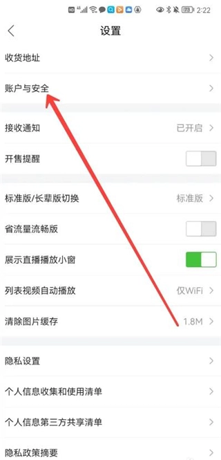 接着点击账户与安全,如图所示;