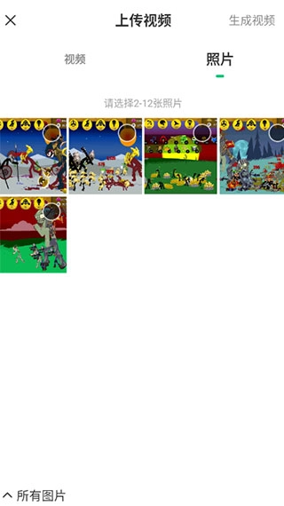 挑选合适的素材,无论是照片还是视频都能用来制作,接着点击生成视频的按钮。