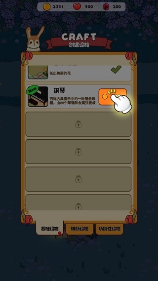 另外,可供建设使用的设施数量不少,除了最初介绍的乐器属于基础设施范畴外,其余还包含辅助设施、功能性设施等类型。