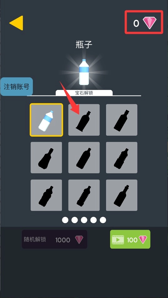 游戏的初始界面会呈现各式各样造型的瓶子外观,你可以挑选自己喜欢的款式并确认使用,而且不同的皮肤还具备独特的跳跃特效。