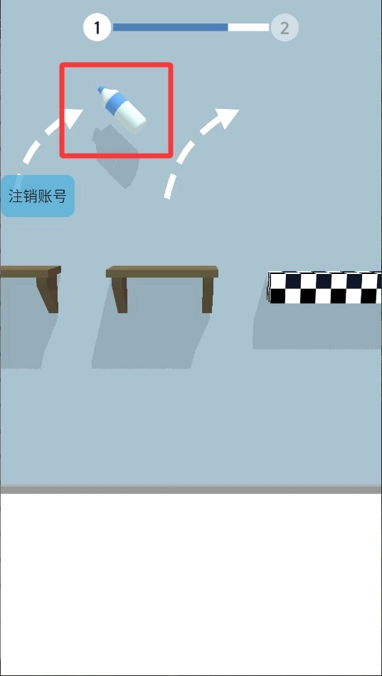 这是一个创意的跳跃类玩法,玩家只需通过简单的点击操作,就能控制矿泉水瓶完成跳跃与翻转的动作,并精准地落在目标平台上。整个过程手感流畅自然。
