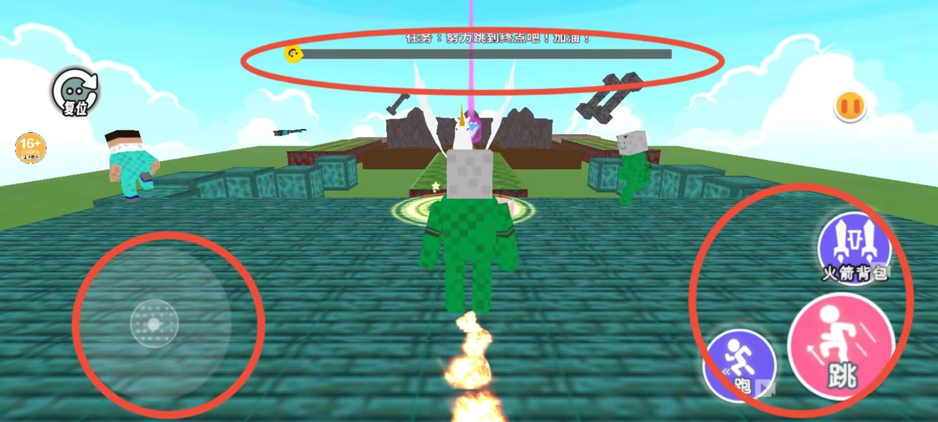 游戏进行时,上方会显示关卡进度指示器,左下角区域用于控制基础移动,右下角的功能键则可实现加速、跳跃以及特殊道具使用等进阶操作。