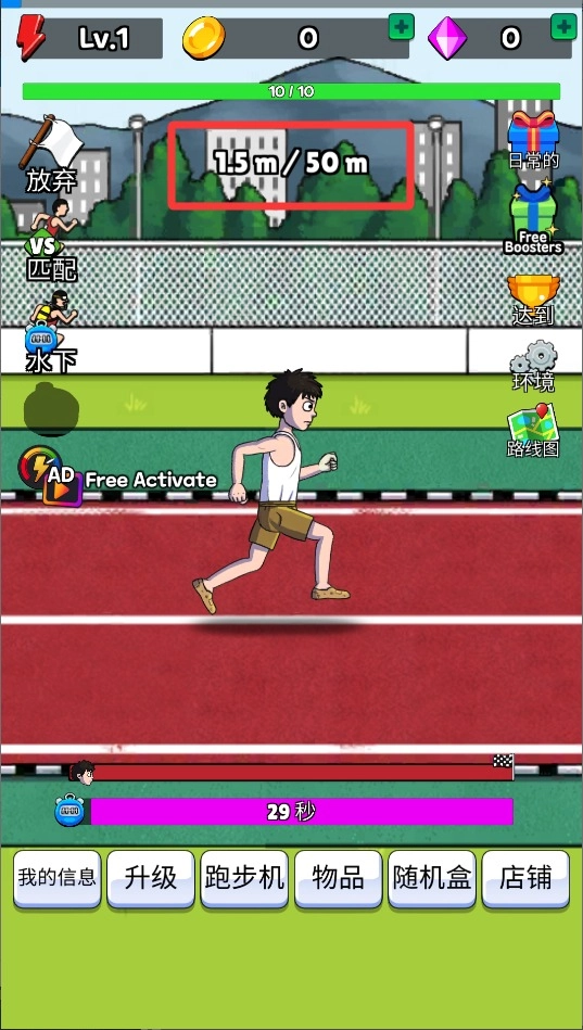基础竞速模式着重考验玩家对节奏的掌控能力,通过点击屏幕来驱动角色向前奔跑。玩家需要精准把握点击的频率,在跑步机上不断突破速度极限,创造属于自己的纪录。